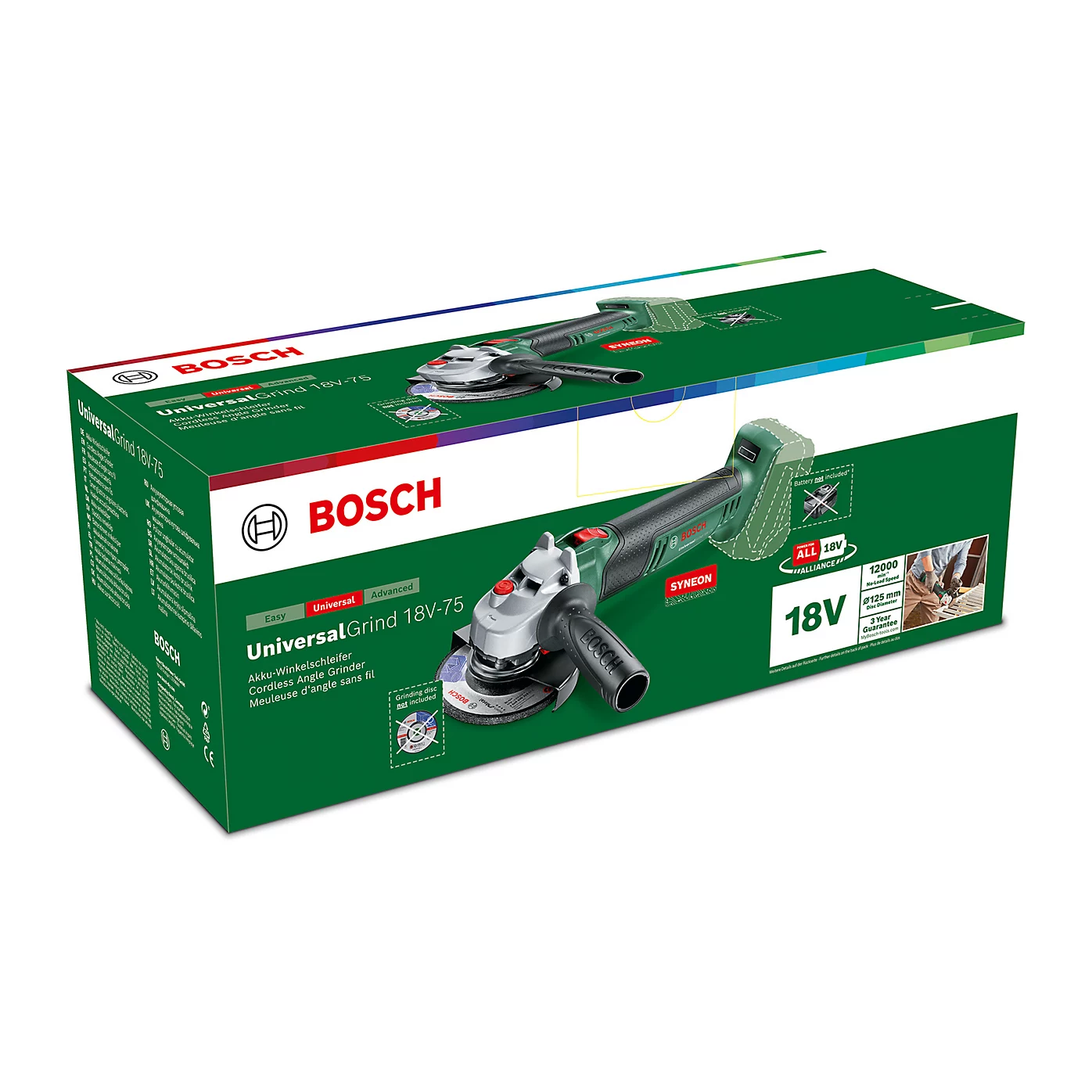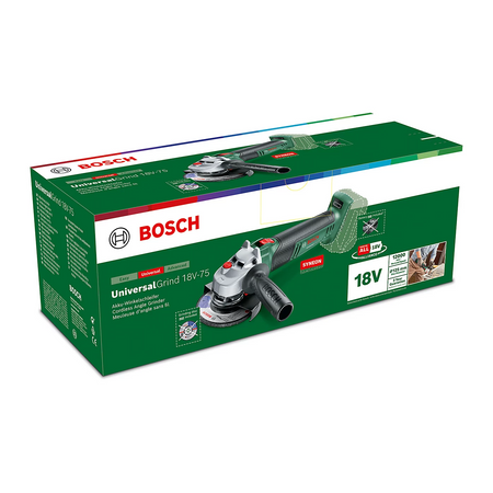 The handy UniversalGrind 18V-75 angle grinder has a powerful motor for handling medium-sized jobs and guaranteeing quick work progress. Its ergonomic design, low weight, slim housing and compact size enable fatigue-free working. Soft start and a quick adjust guard ensure smooth tool operation. This tool is suitable for grinding, cutting and brushing metal, stone, concrete blocks and tiles. It is also part of the POWER FOR ALL ALLIANCE so its 18V battery can power a wide range of tools of various brands.