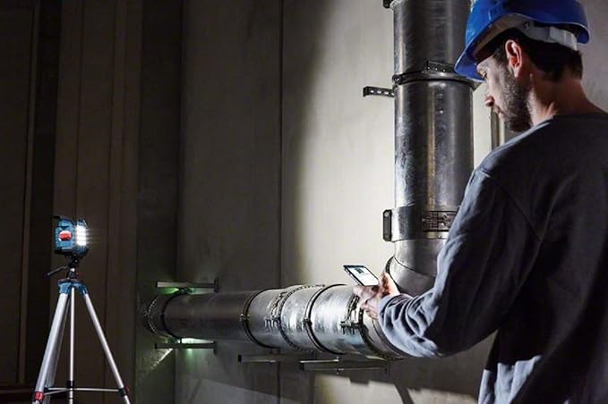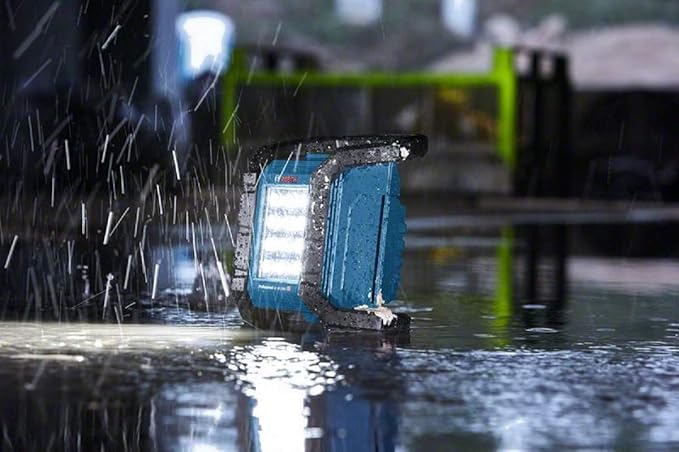 Compact, robust floodlight with splash-proof, dust-tight IP64 rated battery cover. Powerful LEDs deliver up to 1200 lumens for excellent lighting conditions. Features 2 brightness settings, 5 flexible standing positions, and a 1/4" tripod thread. Can be controlled using a smart device via Bluetooth with the Bosch Toolbox app, for fast and easy remote lighting adjustments. Compatible with all Bosch Professional 18V batteries.