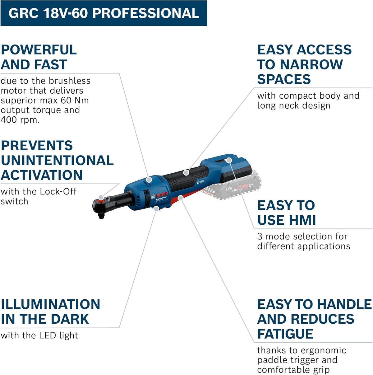 Bosch Professional 18V Ratchet Wrench GRC 18V-60 System Cordless