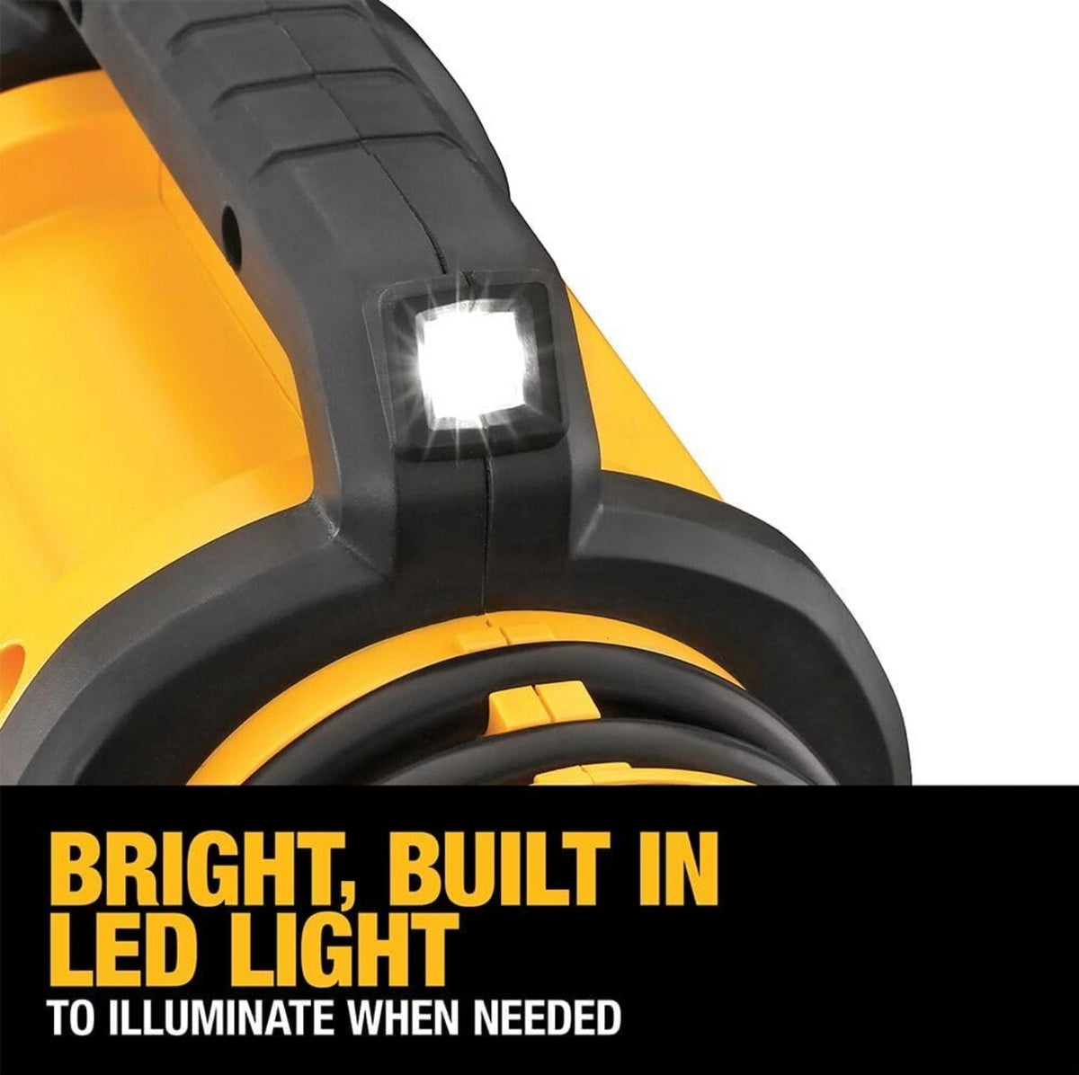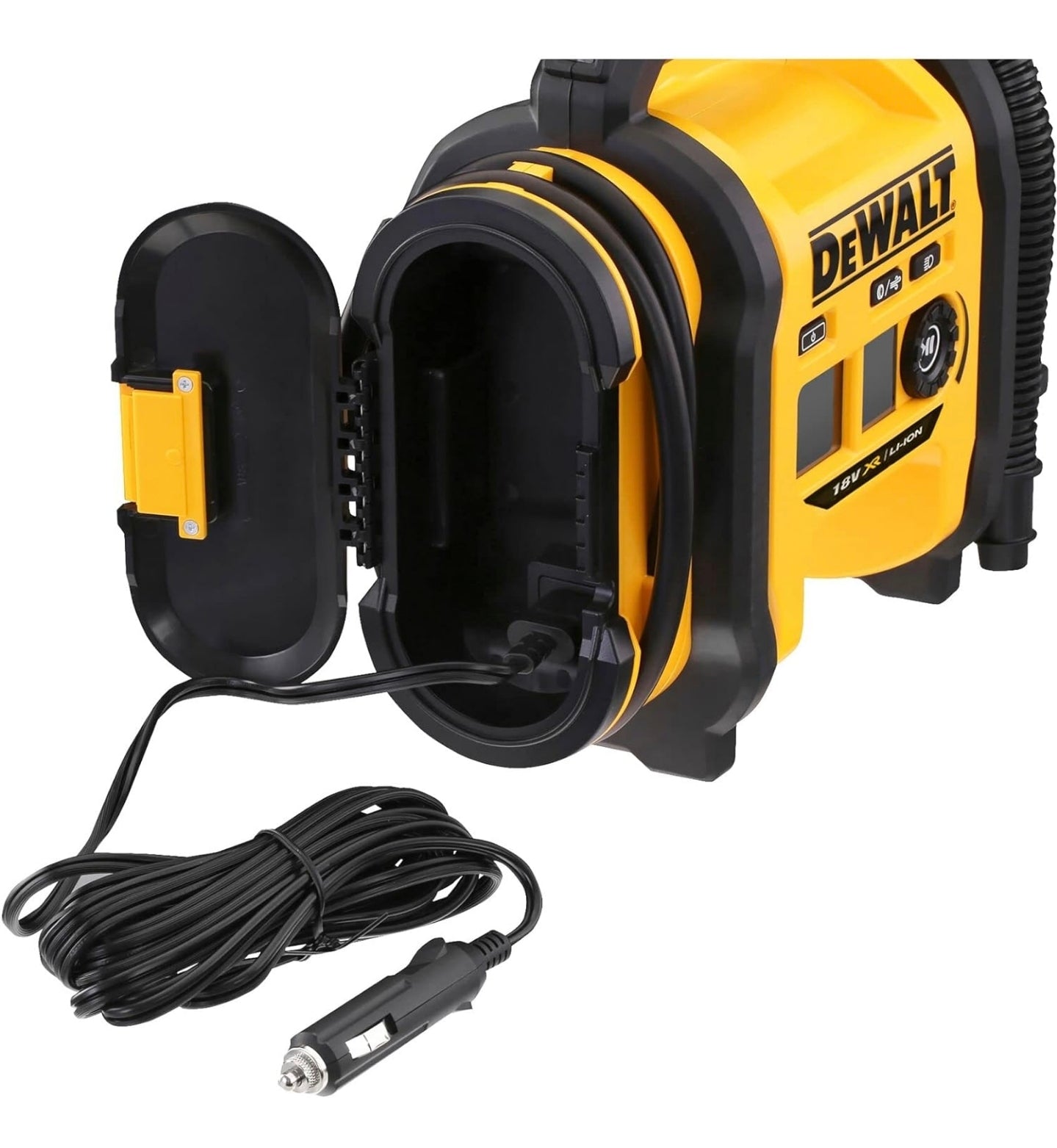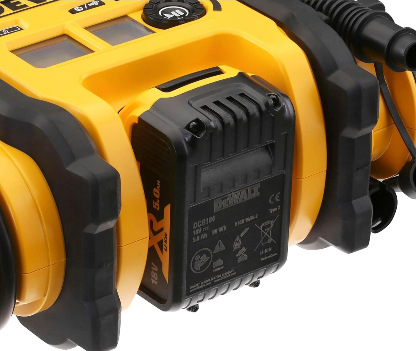 You can choose the power source: 12 volt via the cigarette lighter, 18 volt via the Dewalt XR battery or 230 volt from the socket. So you stay flexible and independent.