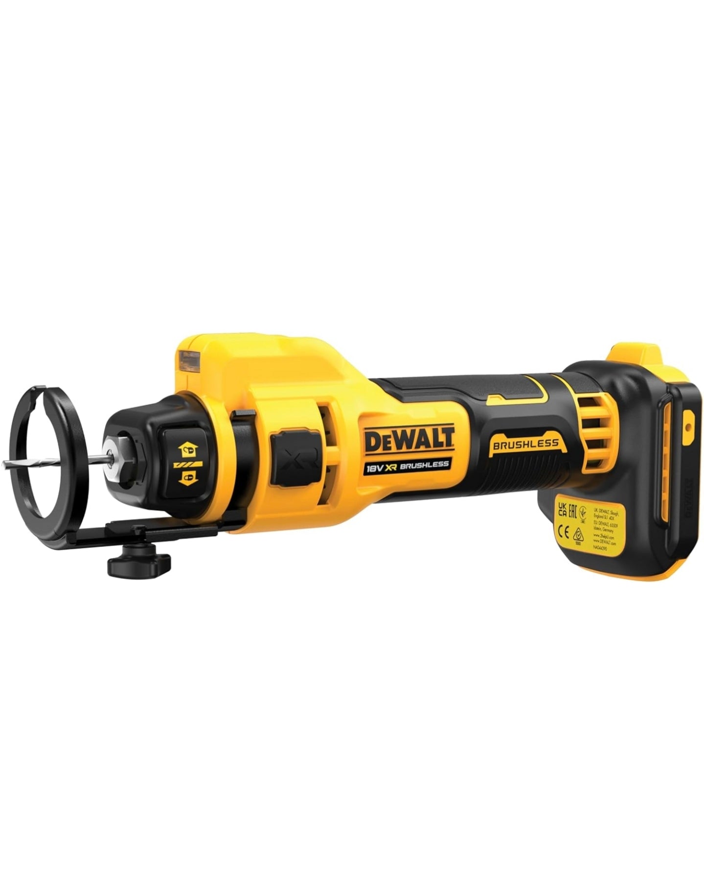 Compact and lightweight, with 26,000rpm brushless motor for fast and clean cutting on a variety of wall panelling. Features forward-positioned on-off button for easy actuation, depth guide and tool-free bit change. Accepts 1/8, 5/32, and 1/4" bits.
