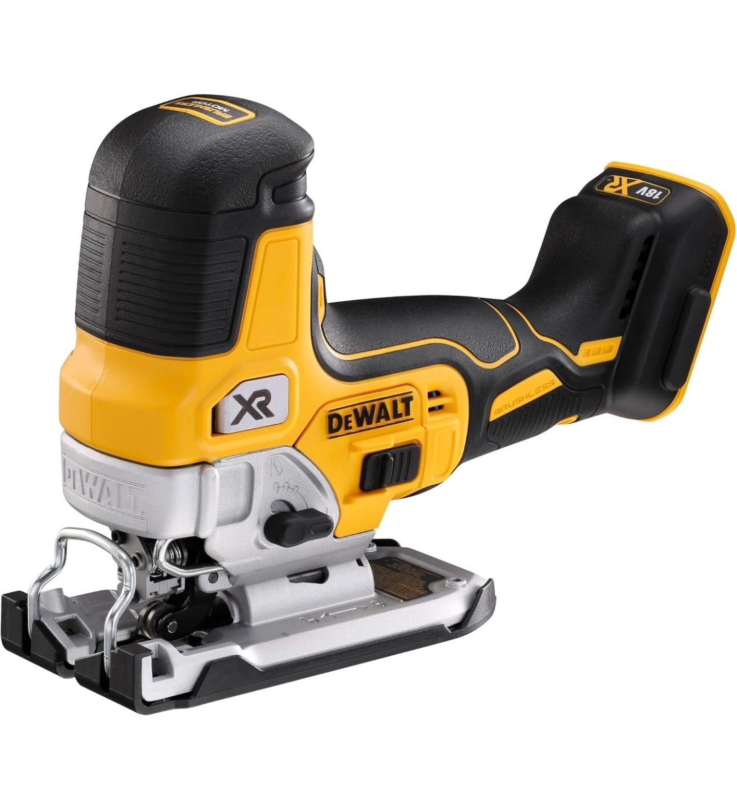The all new 18V XR Jigsaw now upgraded with a brushless motor for increased runtime and performance. The improved tool free blade change mechanism holds the blade more securely and keeps the blade squarer during use for the ultimate precision. Dual LED's and a built in dust blower provide enhanced visibility of the cut line or switch to the included Airlock compatible extraction kit. Bare unit, batteries and charger sold separately. Also available in a top handle version DCS334.