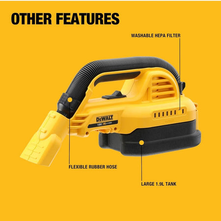 Guaranteed tough, the DEWALT XR 18V Cordless Wet & Dry Handheld Vacuum Cleaner is packed with innovative features and engineered for the most demanding professionals.