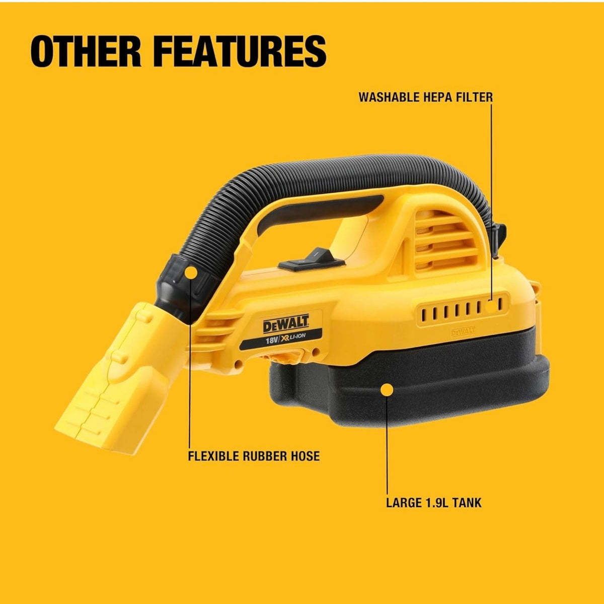 DEWALT XR 18V Cordless Wet & Dry Handheld Vacuum Cleaner (Bare Unit) with Accessories, DCV517N-XJ