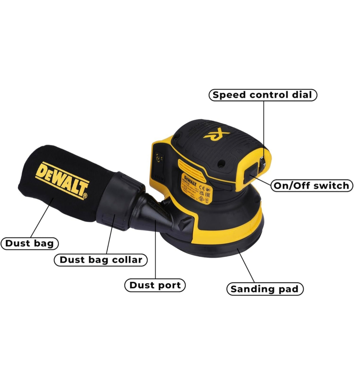 Dewalt DCW210N 18v XR Brushless 125mm Random Orbital Sander Dust Bag Bare Unit