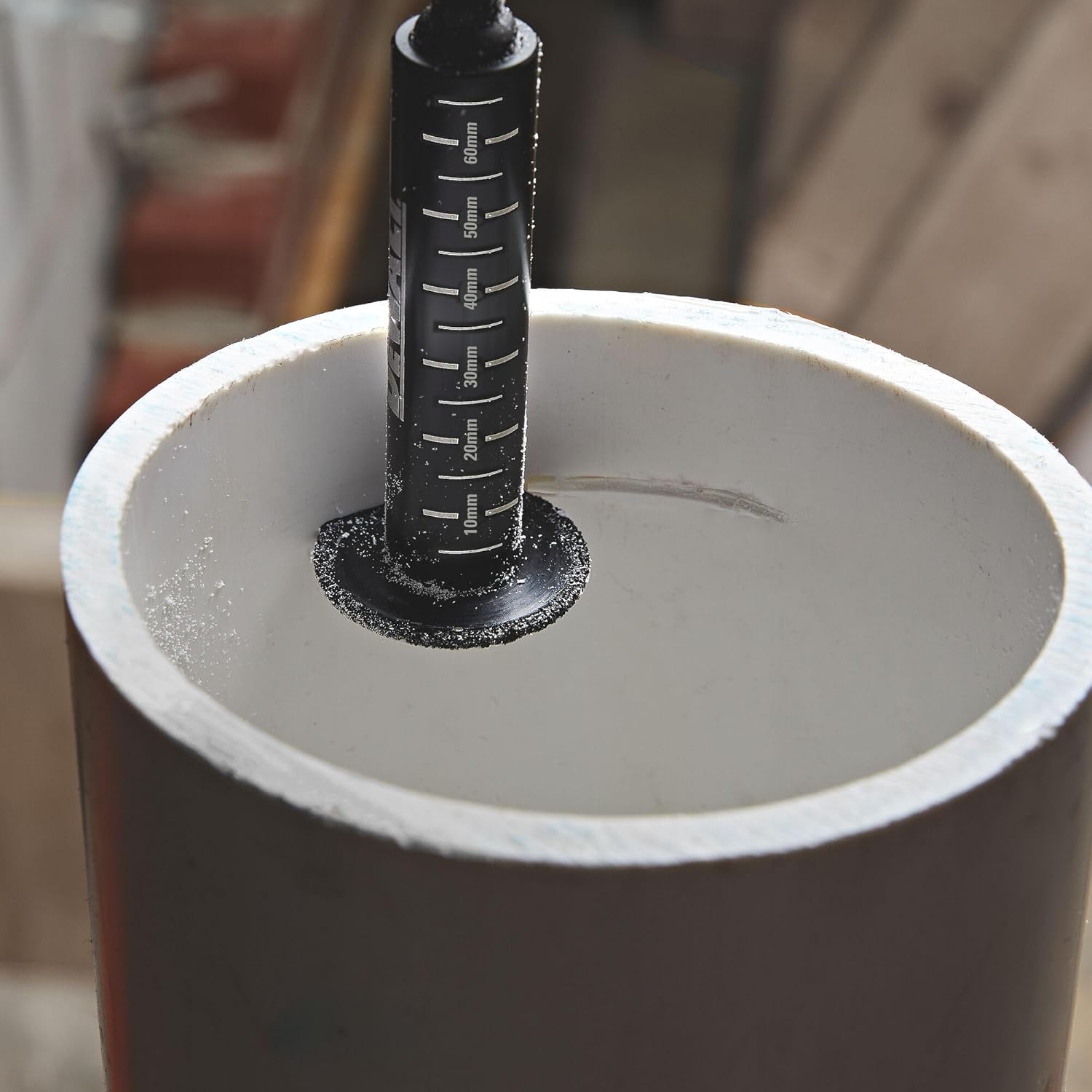 The DEWALT Diamond Grit PVC Pipe Cutter DT20563-QZ ensures fast, precise cuts on PVC pipes, including concrete-embedded ones. With a laser-etched depth gauge, corrosion-resistant design, and compatibility with impact drivers, it is a durable and efficient tool for professionals.