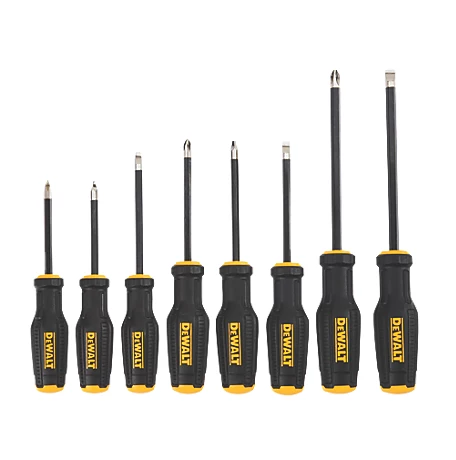 Screwdriver set with MaxFit tip design, providing better contact with fasteners, reducing slippage and stripping. MaxFit ergonomic, bi-material handle offers maximum comfort and torque. S2 steel bar for increased durability and bend resistance.