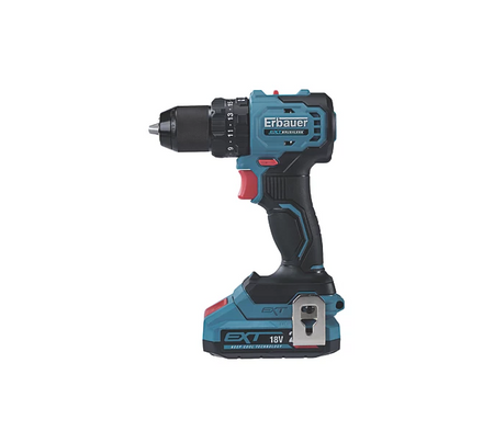 Erbauer compact and lightweight, cordless 18V combi drill ideal for hard-to-reach areas. Equipped with a brushless motor for optimal power and torque, as well as increased run time and longer tool life. Suitable for drilling in wood, steel and masonry. Supplied with belt clip. Compatible with all Erbauer EXT 18V batteries.