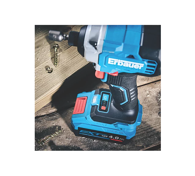Erbauer ERI1092COM ERI1093IPD 18V 2 x 4.0Ah Li-Ion EXT Brushless Cordless Combi Drill & Impact Driver Twin Pack