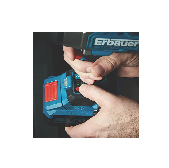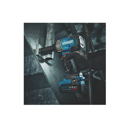 Erbauer EXT 18V Elite impact wrench featuring V2 brushless motor and metal gearbox for long-lasting durability. Provides up to 42% more torque than the previous model, with 800Nm of fastening torque and 1000Nm of nut-busting torque. Ideal for tackling tough automotive or DIY tasks with ease. Compact design offers enhanced manoeuvrability without compromising on power. Also features 4 torque settings for precise control, an integrated LED worklight for clear visibility, variable speed trigger and belt clip for extra convenience.