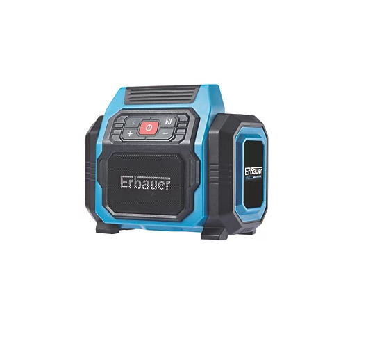 Bluetooth wireless 10W speaker with high performance sound. Also acts as a portable charging facility for mobile devices (using an Erbauer EXT compatible battery) and designed with protective rubber bumpers for durability. Aux cable supplied. Part of the Erbauer EXT and EXT EliteCell, one battery system, running multiple tools for increased flexibility. Compatible with all Erbauer 18V EXT and EXT EliteCell batteries and chargers.