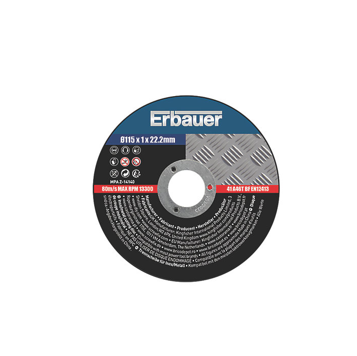 Erbauer Metal Cutting Discs 115mm (4 1/2") x 22.2mm 10 Pack