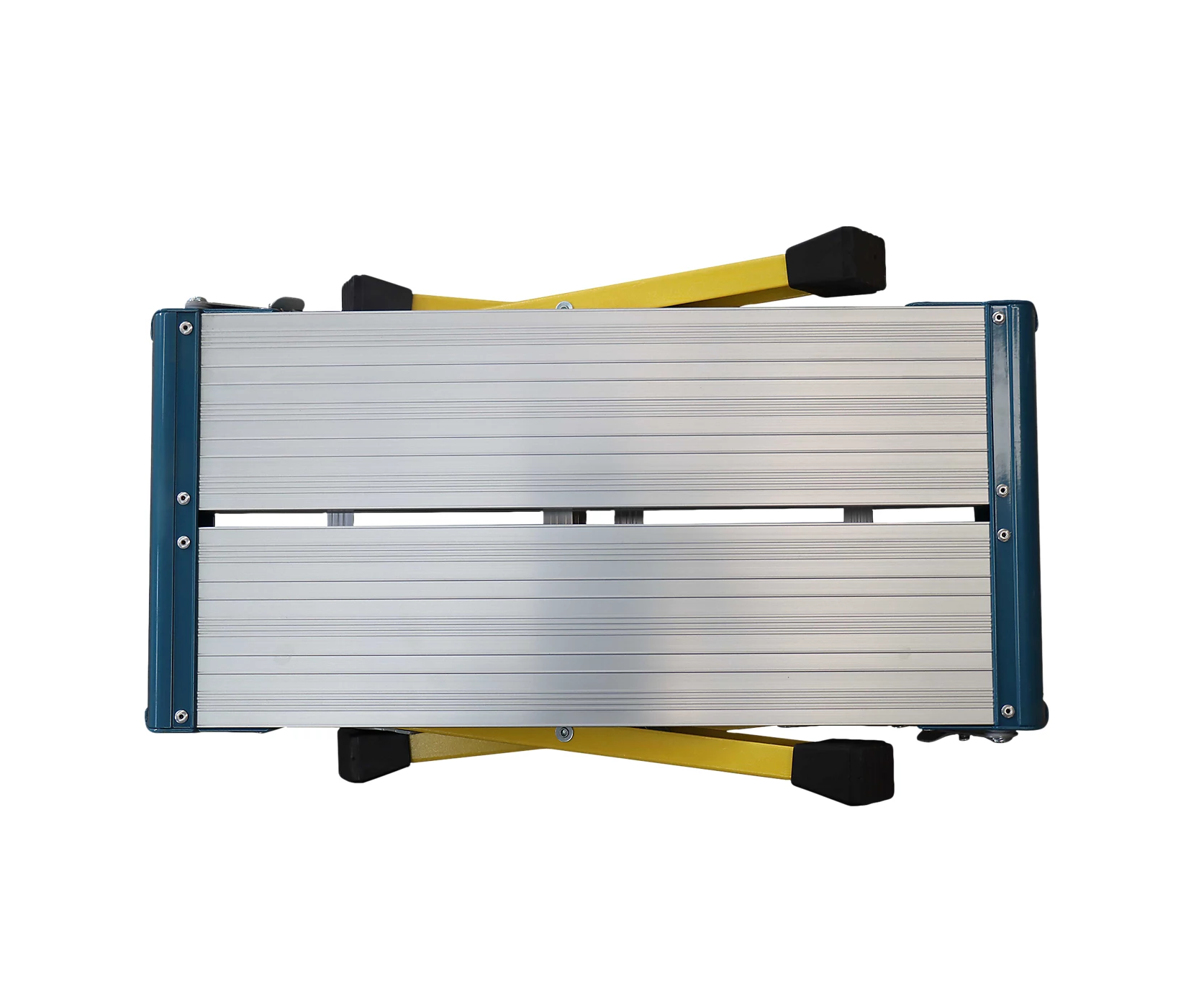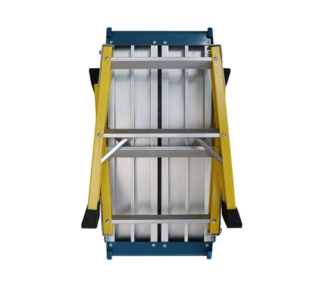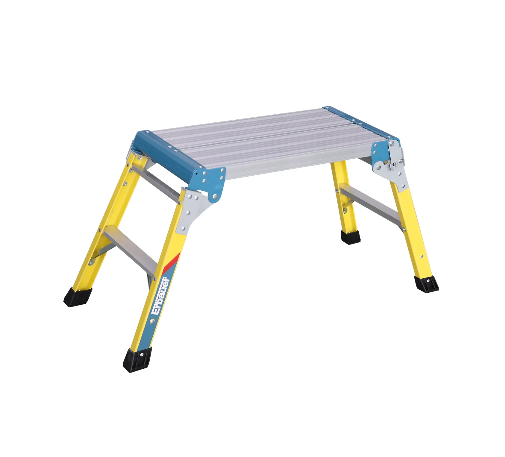 Professional lightweight platform. Folds completely flat and is easy to store. The non-conductive fiberglass means this platform is ideal for electricians and anyone who frequently works near electrical hazards.