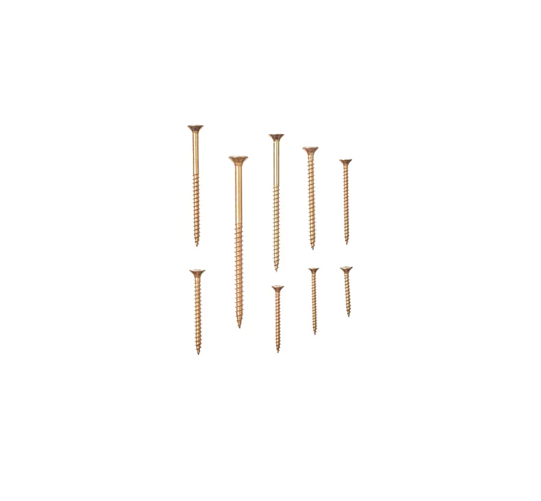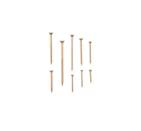 The Goldscrew trade pack offers a versatile selection of high-quality multipurpose woodscrews, essential for professional carpentry and construction. This comprehensive 1400-piece assortment is ideal for various indoor timber applications, including fitting softwood frames or securing chipboard. Each carbon steel woodscrew features a deep, sharp single thread and a wax coating, ensuring a lower screw-in torque and faster driving speed without pre-drilling. The double-countersunk head reduces shear, providing a clean finish. Suitable for use with screwdrivers, combi drills, and impact drivers, these zinc-plated and yellow-passivated woodscrews deliver reliable performance for trade professionals.