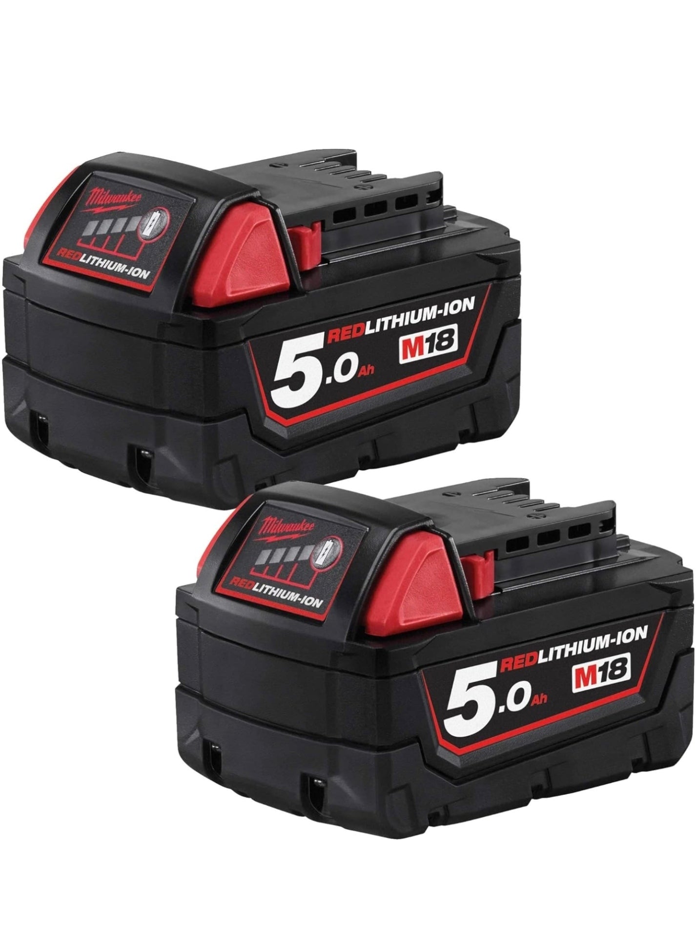 Milwaukee M18B5 18V 5.0Ah RedLithium-Ion Batteries (Twin Pack)