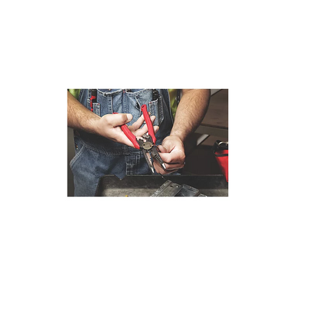 Can be used for wire stripping, cutting or loop making for fast wire preparation. Features high leverage handles with one-handed swing lock design for quick actions. Integrated crimper and bolt cutter, with pliers for gripping and bending cables and reaming head for smoothing 12-25mm pipe.