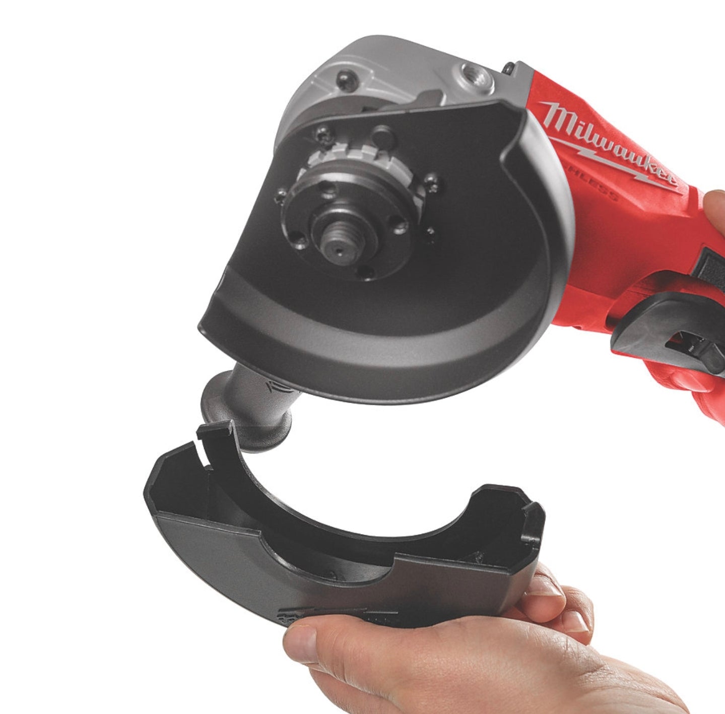 Cordless, brushless angle grinder which is compact and lightweight.