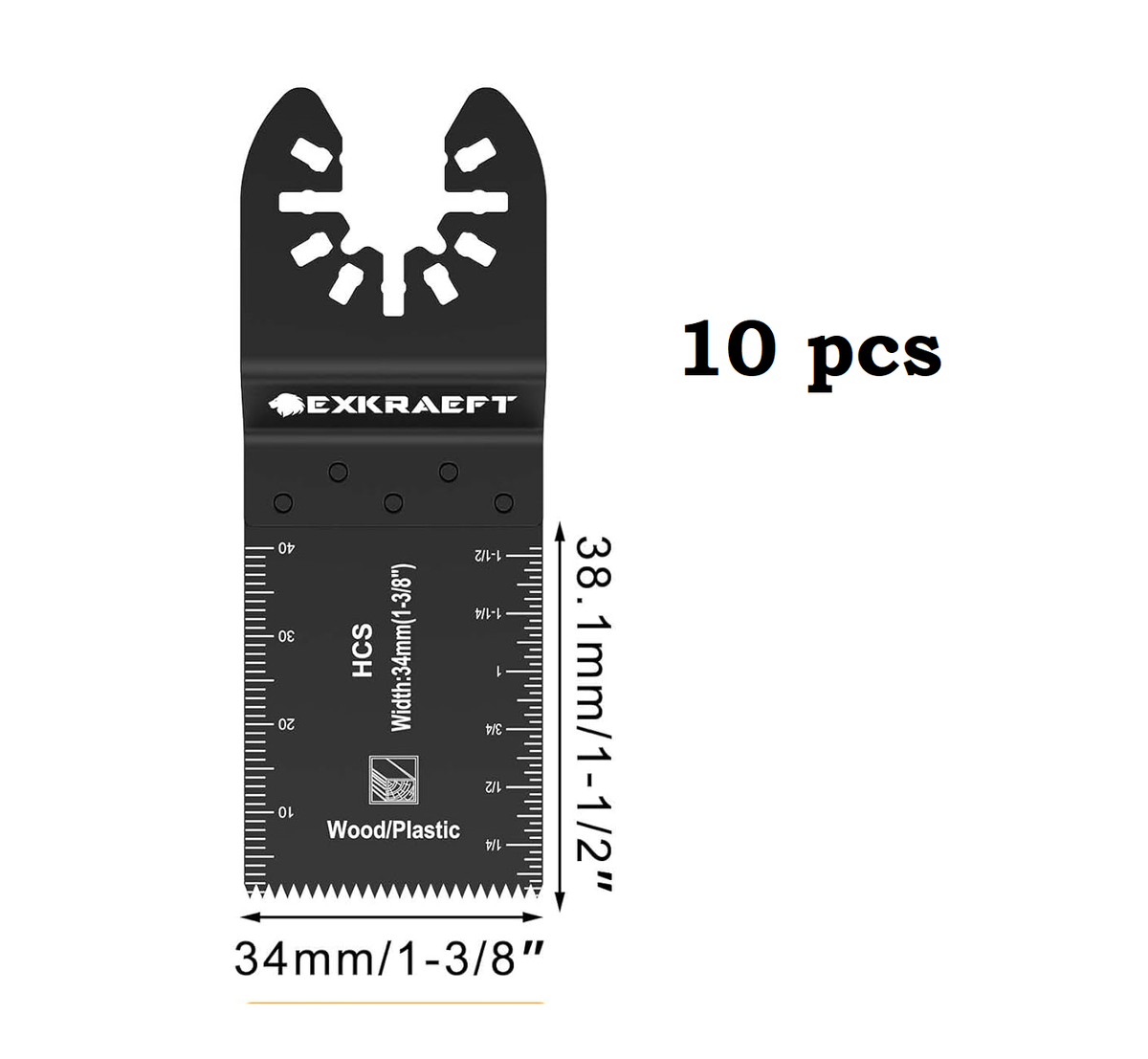 - 10 pcs 1.34" high carbon steel saw blades. Ideal for construction wood,plastics & drywall,flooring etc