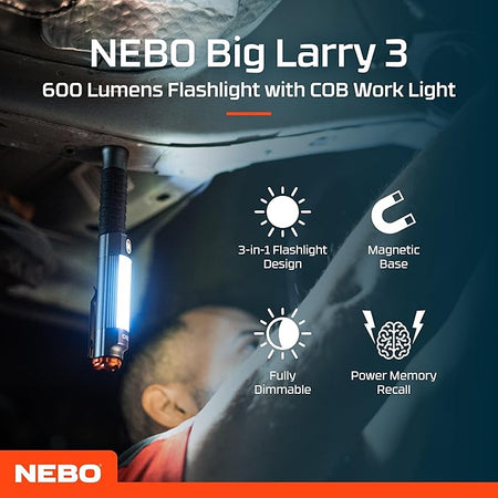 NEBO Big Larry 3 COB LED 600 Lumens Magnetic Battery Pocket Torch Flash Light