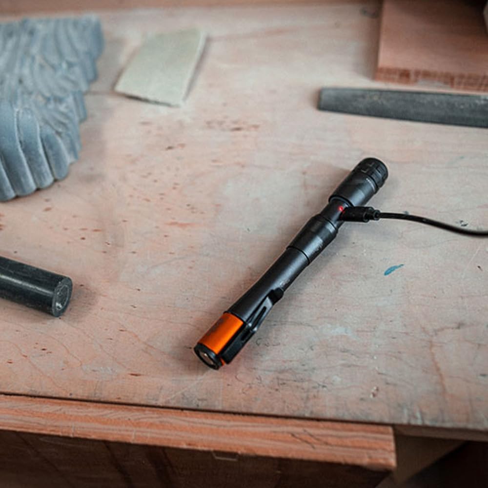 Rechargeable penlight and expandable area light. Features magnetic base and detachable steel belt/pocket clip for secure attachment for working environments. Easy to adjust brightness with 4 light modes for each lighting zone, including direct-to-low. Turbo mode for short bursts of 500lm when required, returning to previous mode after 30seconds. Additional lighting modes include high (250lm), low (25lm), area light mode turbo (400lm), high (200lm) and low (200lm). Flex-Power technology which allows the light to be powered by rechargeable or AAA batteries (not included).