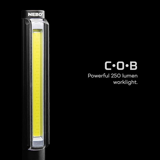 NEBO 250 Lumen COB LED Flashlight Lil Larry 6464 – Aircraft-Grade Aluminum Body with a Belt Clip and Magnetic Base - Black