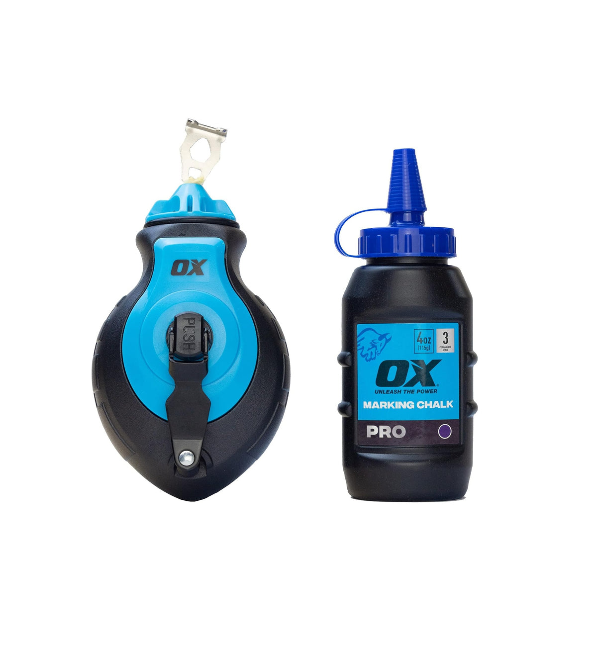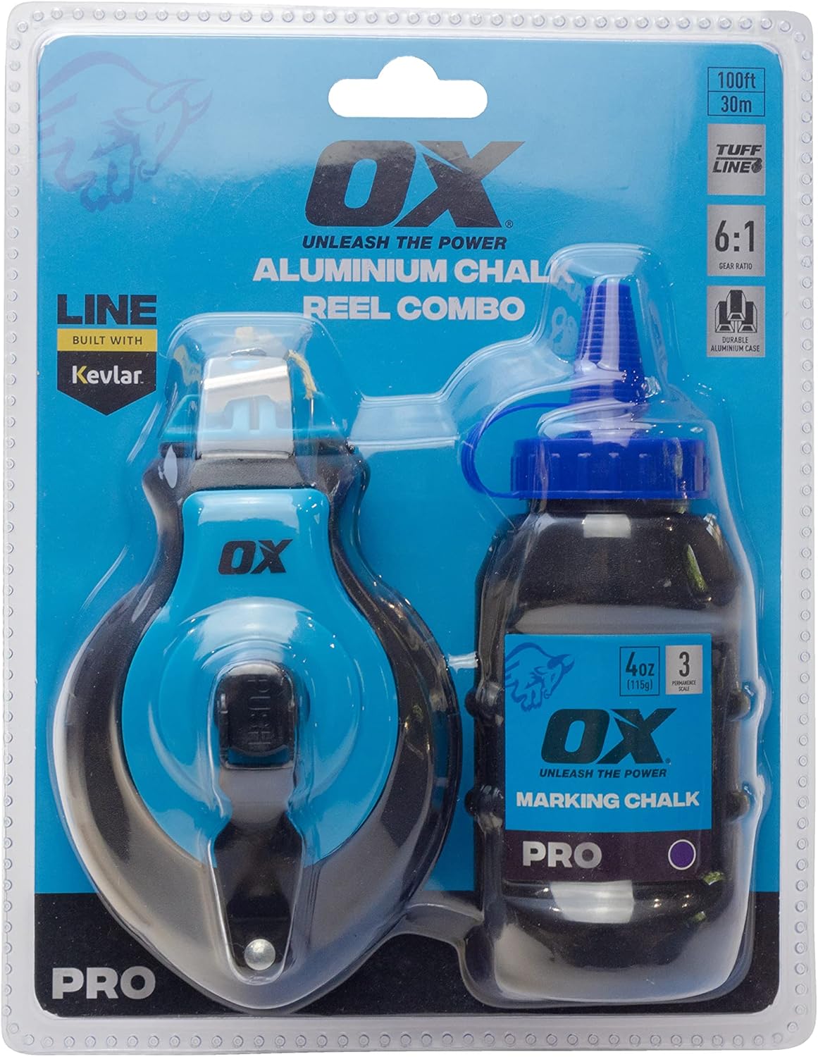 OX Chalk Line Pro Aluminium 30m Reel Blue Chalk Refill Ultra-strong Kevlar line