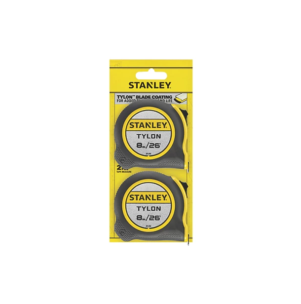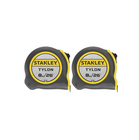 Stanley 8m Tape Measure Set 2 Pack Tylon-Coated Steel Blades
