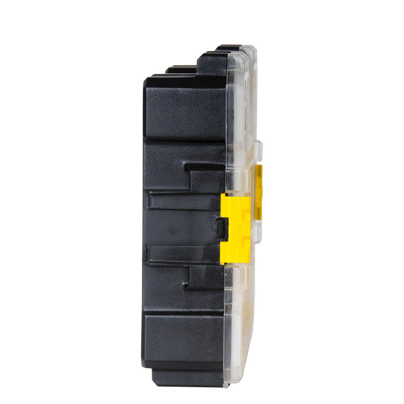 • Unique lid design locks all compartments in place