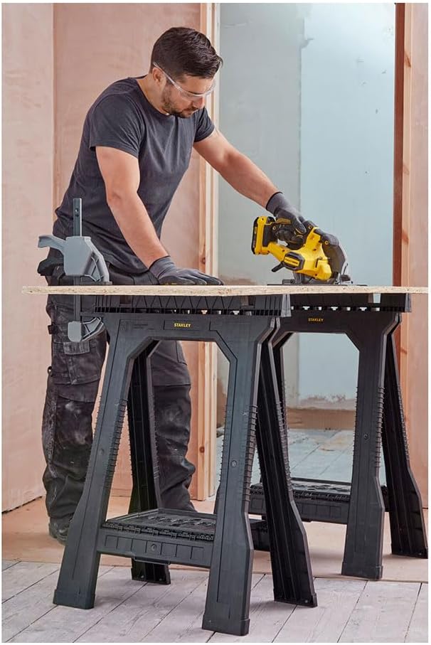 Sold as a pair, the STANLEY Folding Sawhorse is ideal for use as a portable worktable, when you’re sawing, trimming or framing.