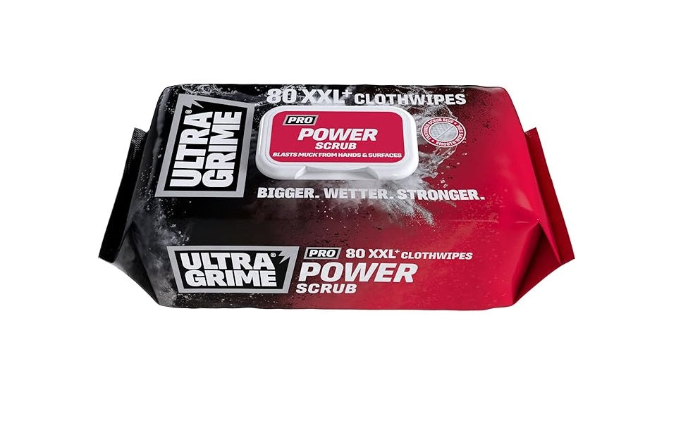 UltraGrime PRO Power Scrub Cleaning Wet Wipes - Big Size Professional Disposable Wipes - Tougher Multi-Purpose Heavy-Duty Textured Scrubbing Cloths (80 Thick Large)