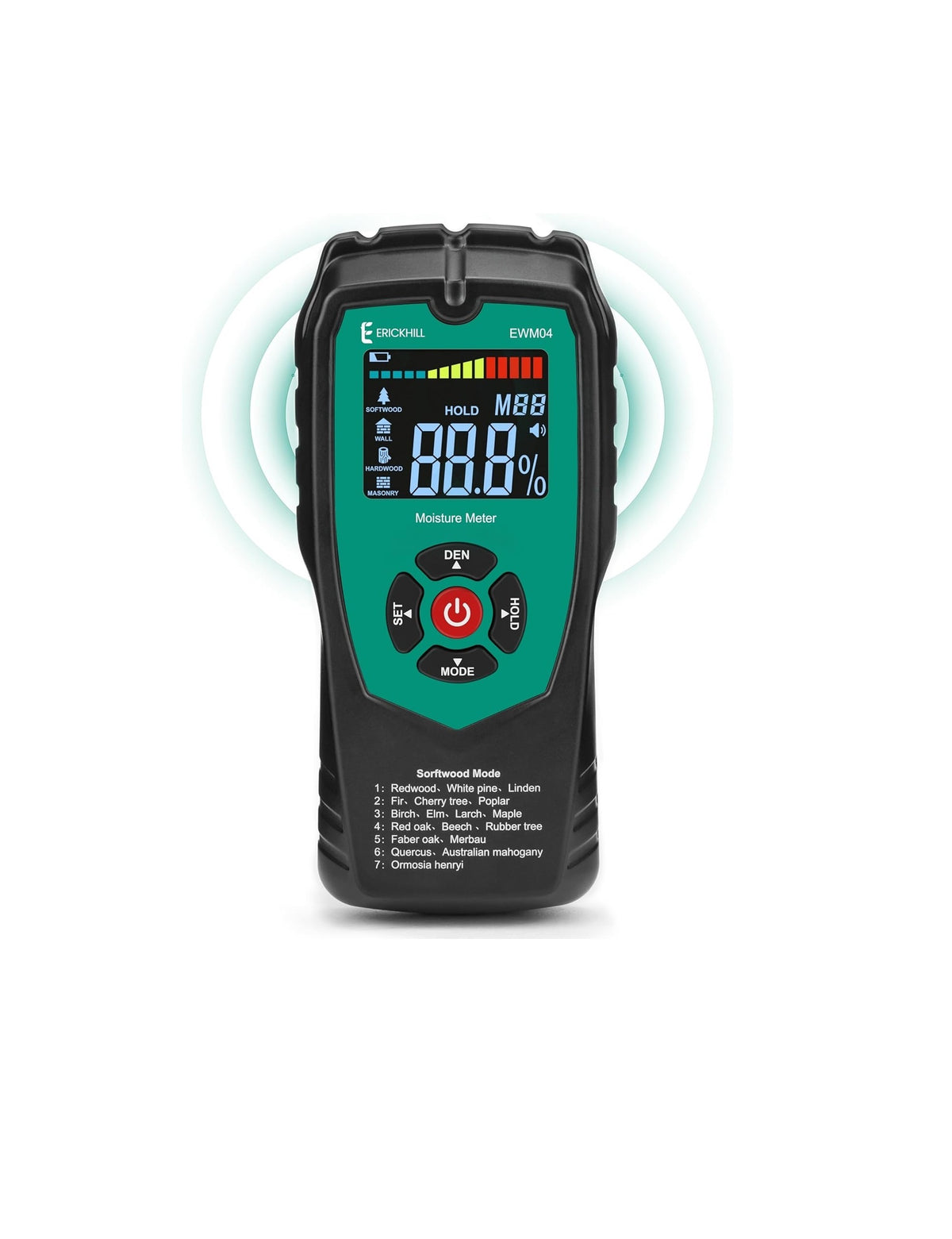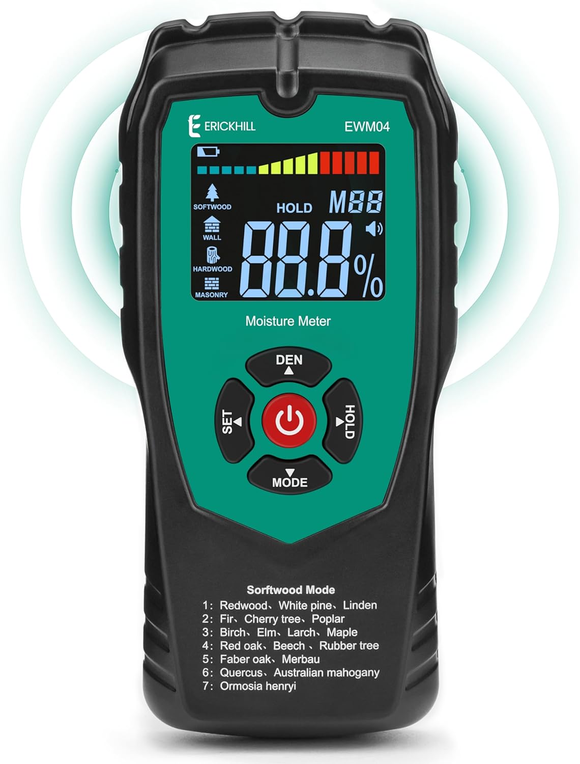 • 4 Testing Mode: Drywall, Masonry, Softwood & Hardwood Testing Mode for testing matrials,This smart instrument can base on your selected materials with applying the correction factors and provide you with the most accurate readings